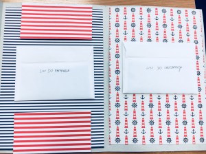 Teraz mogę już Wam powiedzieć, że mój Marynarz znalazł lapbooka już w hotelu, zanim jeszcze wszedł na statek. Był w ogromnym szoku. Mam nadzieję, że będzie równie pozytywnie zaskoczony, gdy otworzy wszystkie okienka-niespodzianki.