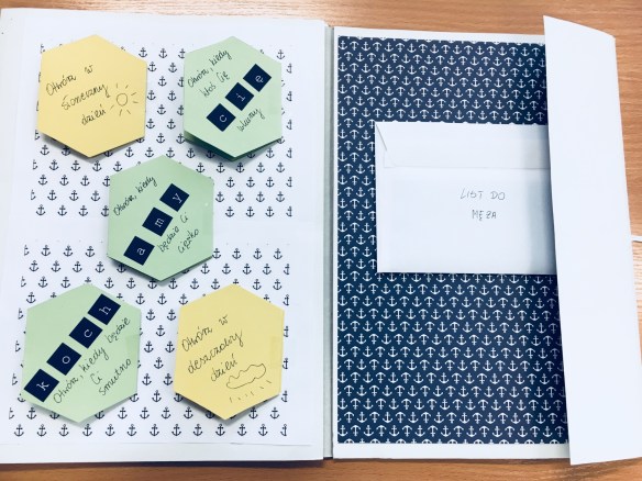 Ja pozostałam w tematyce morskiej. Skupiłam się bardziej na konkretnych datach lub dniach związanych z emocjami mojego Marynarza. W moim lapbooku jest kilka okienek niespodzianek, które trzeba otworzyć w konkretnym dniu, np. w dniu taty, w dniu jego urodzin, kiedy ktoś go wkurzy, kiedy świeci słońce itd. Są też listy do niego ode mnie. Są okienka, które może otwierać codziennie. Jest porcja pozytywnej energii na co dzień, w końcu jest też kalendarz do skreślania dni do powrotu.
